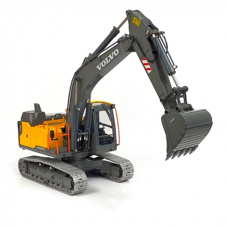 Questo modello in scala 1:14 è stato progettato con la massima precisione ed è una replica dettagliata del Volvo EC160E, un escavatore cingolato da 16 tonnellate. Con dimensioni proporzionali di 61 × 20 × 22 cm e un'estensione di braccio e avambraccio di 56 cm, questo modello colpisce per la sua mobilità e le sue prestazioni assolutamente realistiche.